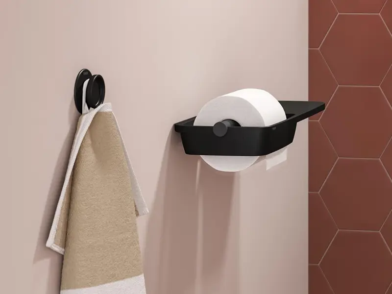 Dat eenvoud het startpunt is van het Tess design blijkt uit de toiletrolhouder. Het ongecompliceerde ontwerp laat een perfecte harmonie zien tussen functie en design. De wc-rolhouder met planchet voegt een extra functie toe en biedt extra ruimte voor bijvoorbeeld je mobiele telefoon.